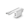Charge your mobile devices safely with Belkin's Dual 24W USB-A home charger. Charge two mobile devices simultaneously from any of USB-A ports up to 2.4A each. USB-A to USB-C cable included to charge USB-C devices.