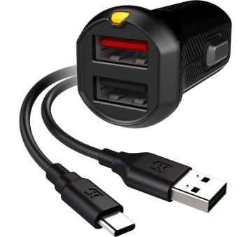 Metallic Car Charger With USB-A to Lightning cable - Black